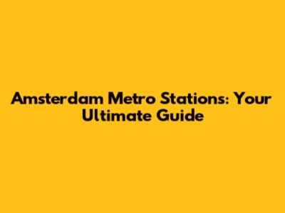 Amsterdam Metro Stations: Your Guide