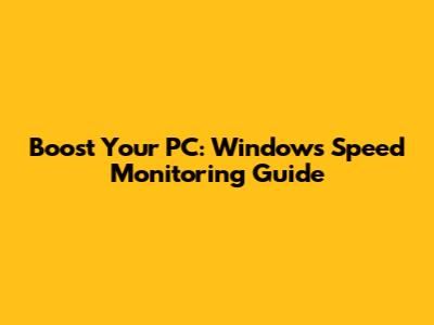 Boost Your PC: Windows Speed Monitoring Guide