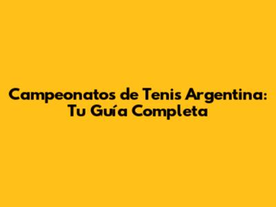 Campeonatos De Tenis Argentina: Tu Guía Completa