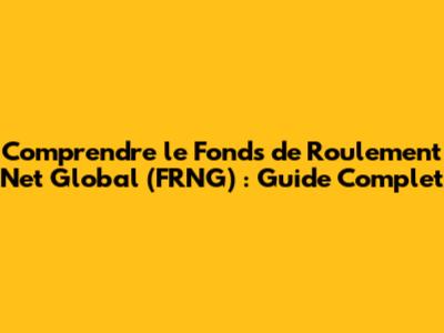 Comprendre Le Fonds De Roulement Net Global (FRNG) : Guide Complet