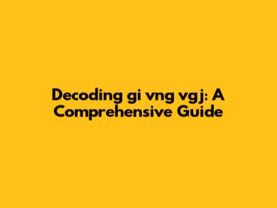 Decoding 'gi Vng Vgj': A Comprehensive Guide