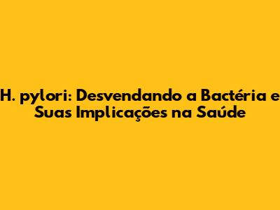 Se você estiver apresentando esses sintomas, é importante procurar um médico para um diagnóstico preciso e tratamento adequado. Não se automedique, pois o tratamento para H. pylori geralmente envolve antibióticos e outros medicamentos específicos.
