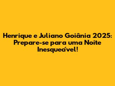 E aí, galera! Se você é fã de sertanejo e está em Goiânia ou pensando em dar um pulo por aqui em 2025, tenho uma notícia que vai fazer seu coração bater mais forte: Henrique e Juliano confirmaram presença em um show épico na capital goiana! Sim, meus amigos, a dupla que dispensa apresentações, conhecida por seus hinos que embalam corações apaixonados e festas animadas, está chegando para incendiar o palco e fazer de 2025 um ano ainda mais especial para todos nós. Se você curte um bom modão, uma sofrência de primeira ou aquela energia contagiante que só o sertanejo universitário oferece, já pode ir se preparando, porque essa noite promete ser histórica. Preparem as gargantas, os corações e, claro, os ingressos, porque a gente sabe que show do Henrique e Juliano esgota rápido! Fiquem ligados para mais detalhes sobre datas, locais e venda de ingressos, mas já adiantamos: 2025 em Goiânia será marcado por muita música boa e pela presença ilustre dessa dupla que conquistou o Brasil.