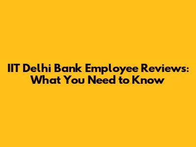 IIT Delhi Bank Employee Reviews: What You Need To Know