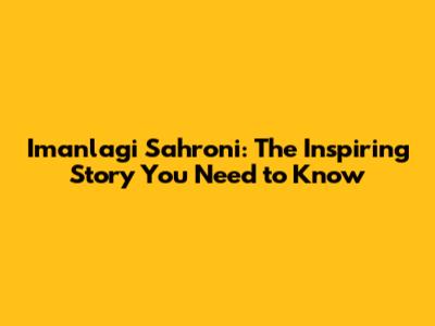 Imanlagi Sahroni: The Inspiring Story You Need To Know