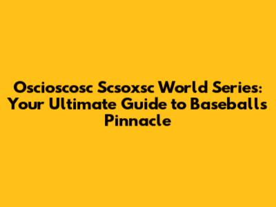 Oscioscosc Scsoxsc World Series: A Comprehensive Guide