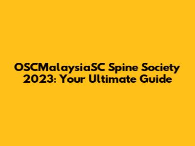 OSCMalaysiaSC Spine Society 2023: What You Need To Know