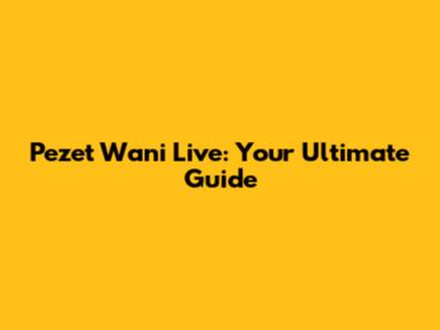 Pezet Wani Live: The Ultimate Guide
