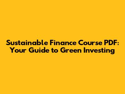 Sustainable Finance Course PDF: Your Guide To Green Investing
