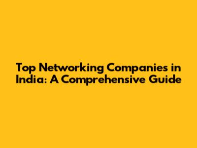 Top Networking Companies In India: A Comprehensive Guide